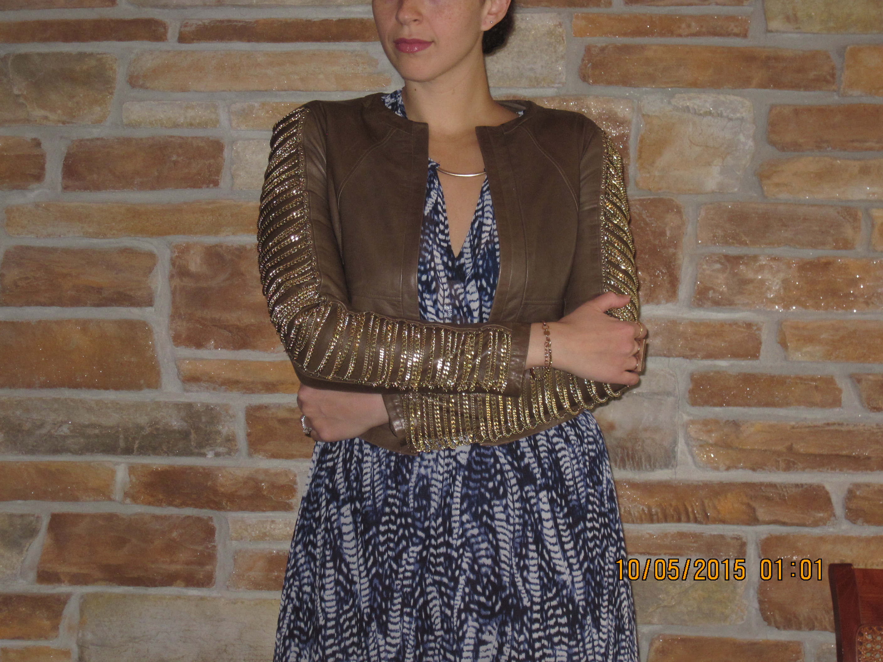 (Dress: H&M, Shoes: Nine West, Jacket: Irfe, Purse: Valentino)