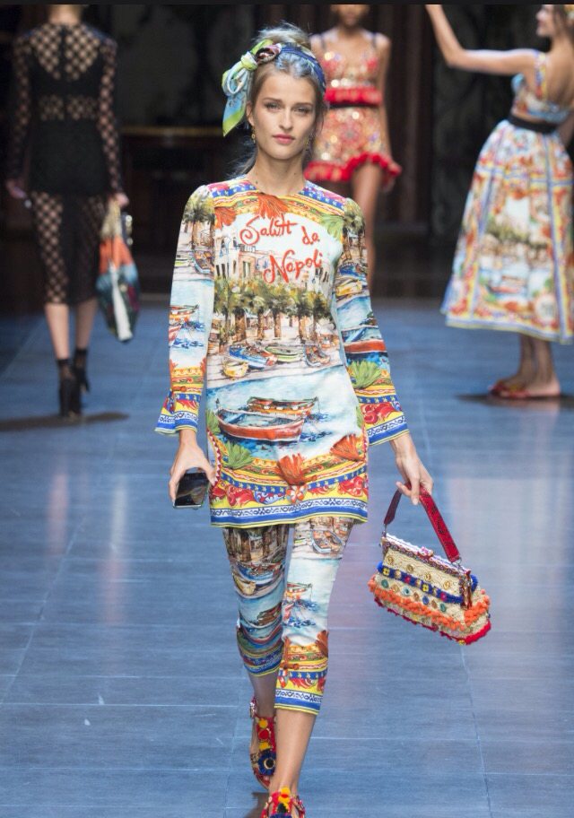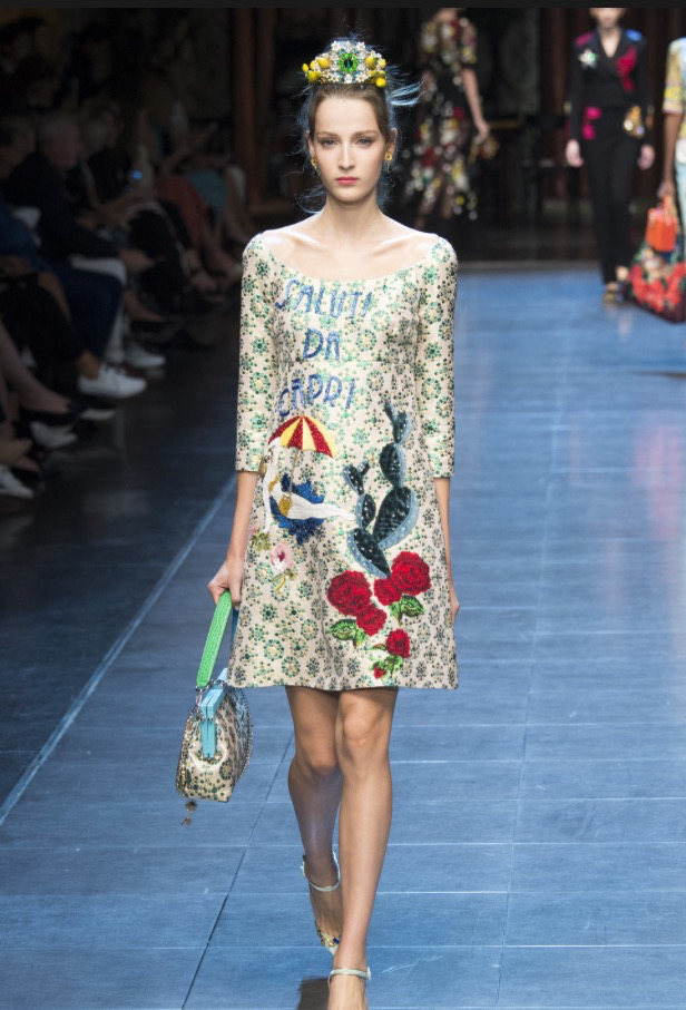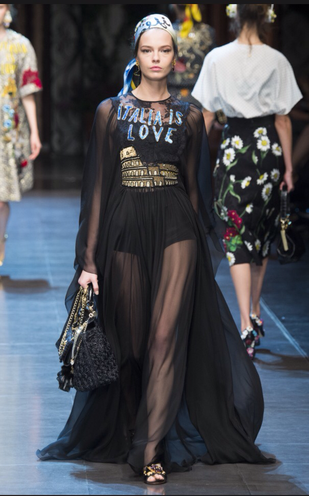 The runway was an eclectic array of Italian memorabilia and souvenir-like images on the glorious dresses. They