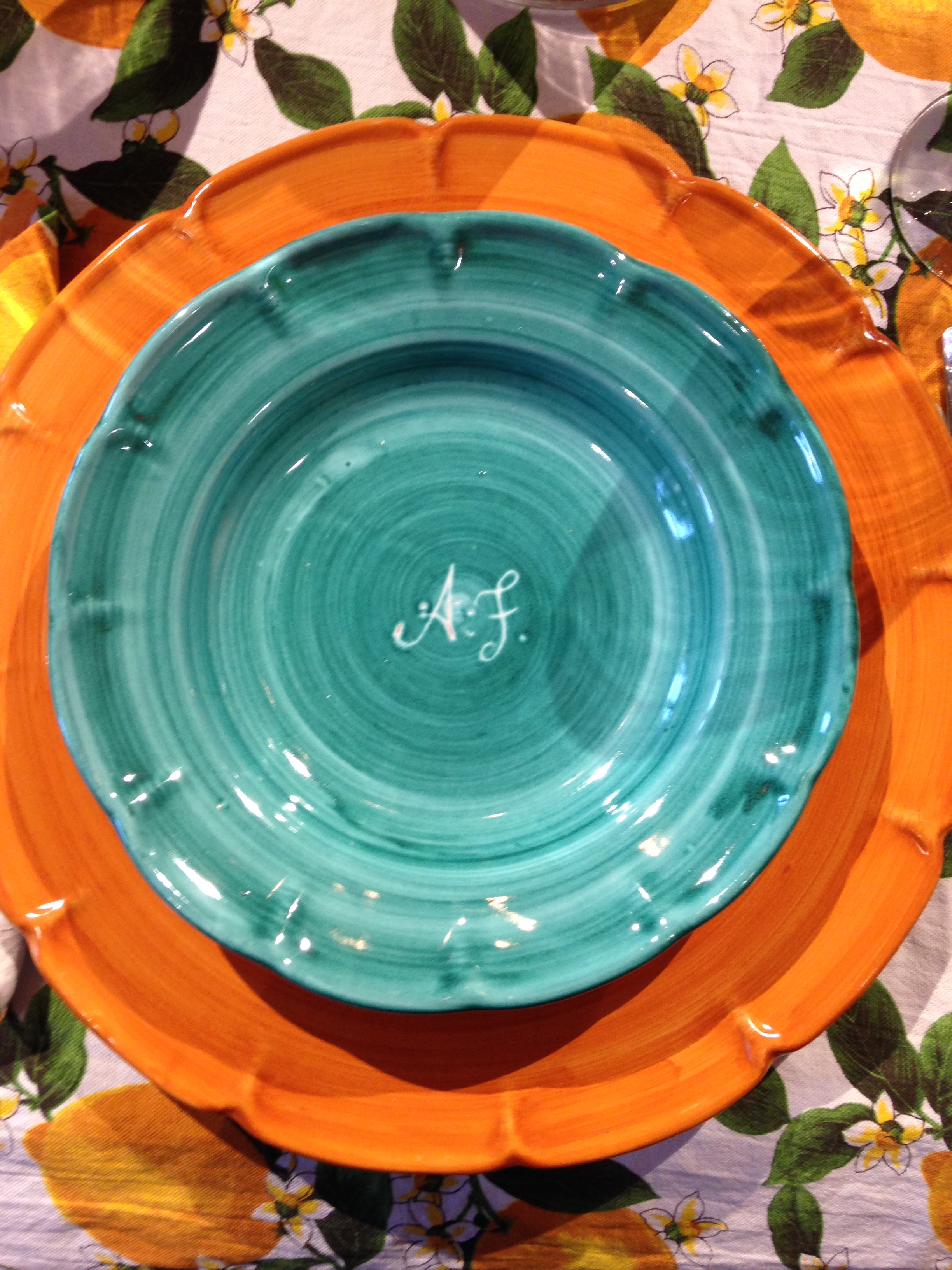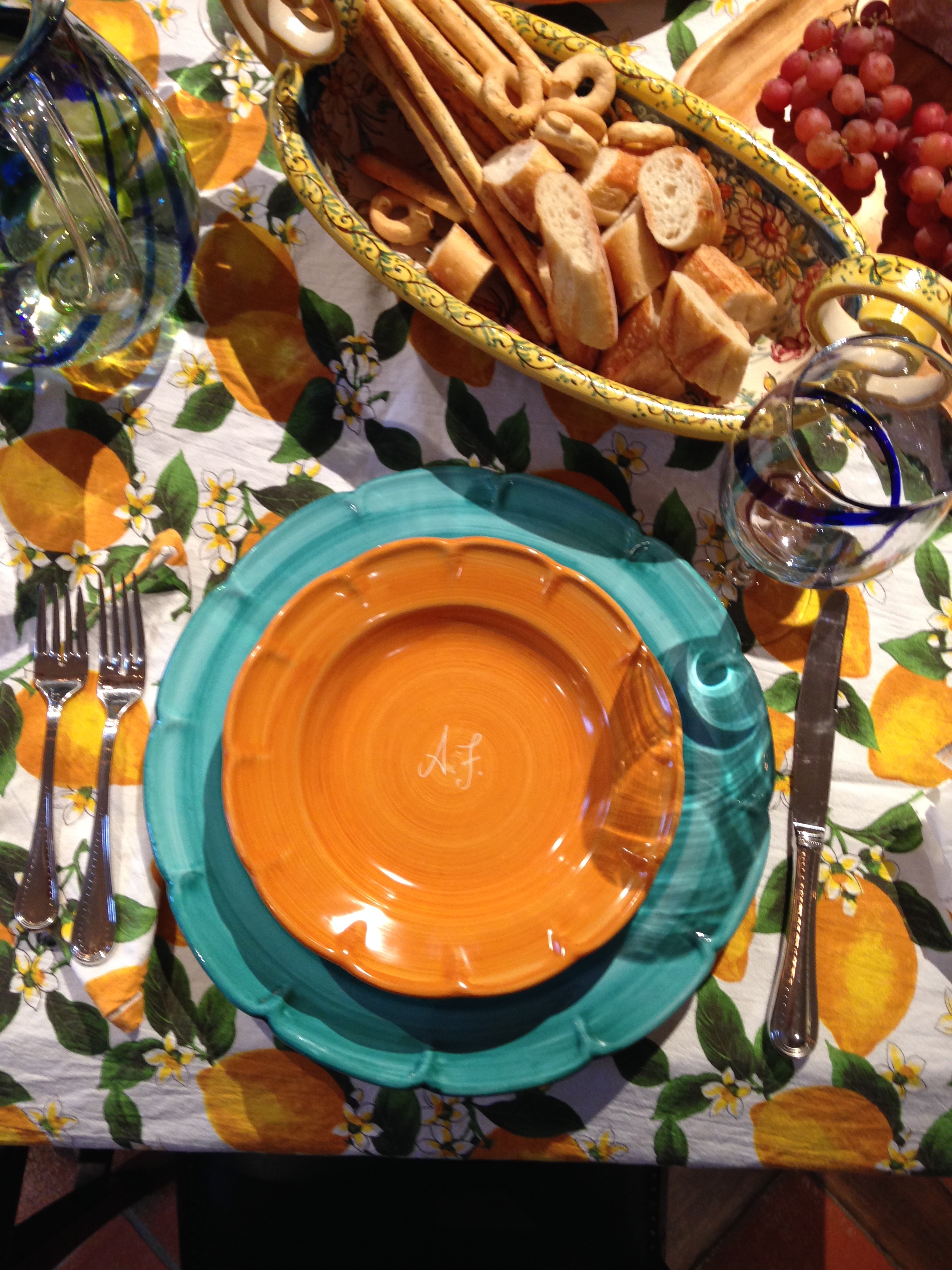 I loved the Dolce & Gabbana Italia Spring 16 show so much that it gave me inspiration for my tabletop decor for tonight’s dinner. D&G drew inspiration from Italy and the beautiful hand painted ceramics of Sorrento, which I love soooo much!! They remind me of the beautiful Amalfi Coast and there are no rules when it comes to accenting your home with these special, one of a kind pieces…There is absolutely nothing like them. I couldn’t believe the designers’ whole story when I tuned into vogue.com and saw the pictures because that is exactly where my head was at. I recently got some amazing ceramic pieces from Italy, some of them even personalized with our initials. These were a treat to ourselves, but would make amazing gifts for a newlywed couple or for someones special birthday or house-warming, especially if they are foodies and entertainers. Take a look at the lemon backdrop table setting for tonight..be inspired.be happy.live colourfully.