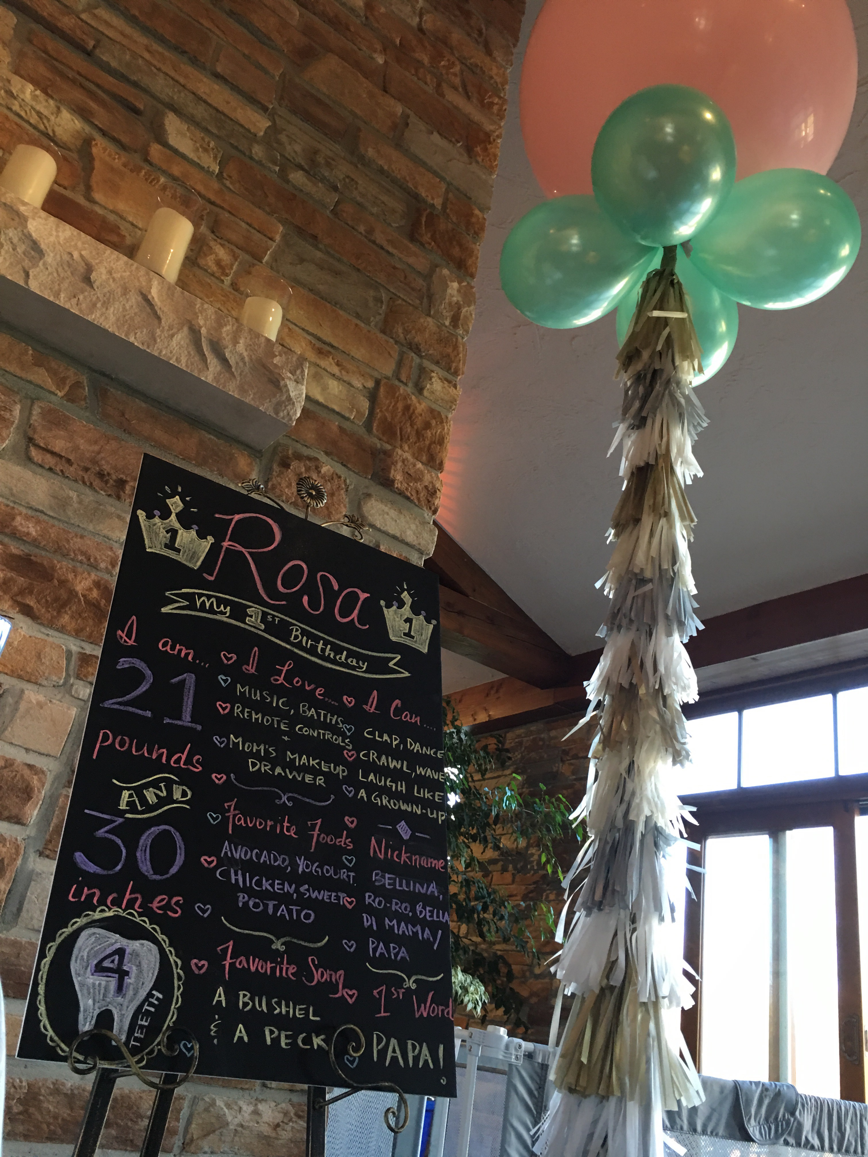 7. Dress your little one in the perfect guest of honour outfit. I actually made my little princess’ outfit for that special day. I bedazzled a plain white onesie with gold and pearl “ONE” that I found at Micheals and made her a Tiffany blue and Pink tutu. She looked fancy-casual. Lol fancy, but comfy enough to crawl around and soak in all the action.